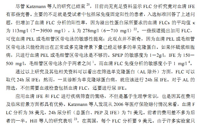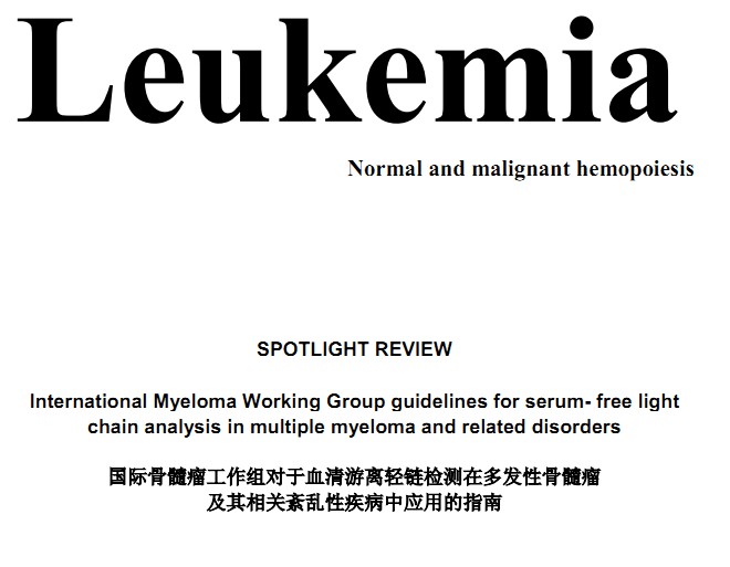 译本-国际骨髓瘤工作组关于血清游离轻链分析在多发性骨髓瘤及其相关疾病中的应用指南