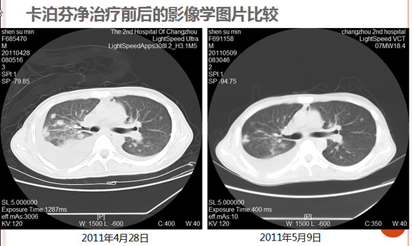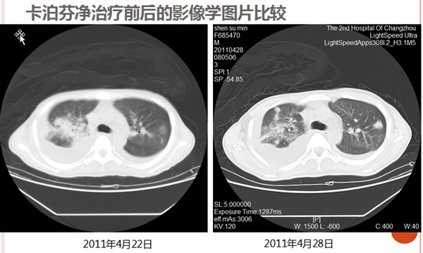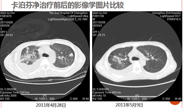 诊断 Ph+ALL,肺IFI 治疗经过【方案、剂量】及疗效评价【检查、评估结果】 » 临床拟诊肺部侵袭性真菌感染,先予伊曲康唑治疗两周,病情加重,后改为卡泊芬净 治疗病情逐渐好转。 随访 目前随访两月,肺部病灶基本吸收。 体会/提问/讨论/教训 本例并无病原学依据,但患者化疗后出现白细胞减少,其中粒缺期超过10天,并且使用过较长时间的激素,之前接受过广谱抗菌药物治疗,又是ALL缓解后粒细胞已恢复正常的情况下肺部感染加重,故真菌感染可能性很大,因为伊曲康唑治疗无效,考虑到:①伊曲康唑对光滑念珠菌、克柔念珠菌、葡萄牙念珠菌无活性或活性弱;而卡泊芬净对上述真菌有活性。②卡泊芬净与伊曲康唑的抗菌机理不同,对伊曲康唑耐药的真菌对卡泊芬净可能有效。故本例选用卡泊芬净治疗。 |