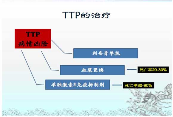 实验室检查 ADAMTS13酶活性0% 诊断 有SLE病史,溶血性贫血,血小板进行性下降,肌力下降、皮肤瘀斑、腹痛,肝肾功能异常 病程相对较长,无精神异常,未行血浆置换病情曾有好转,无持续发热 治疗选择 治疗经过 继续口服环孢素、尤金维持 血浆置换总量8500ml,LDH回降至309.0U/L,PLT回升至24.0X10*9/L,双下肢肌力较前改善,皮肤瘀斑基本吸收,未再出现新鲜瘀斑。 血浆置换8500ML后皮肤瘀斑吸收 治疗转归 患者后因经济原因停止血浆置换,监测血常规血小板基本稳定在18x10*9/L左右LDH:300U/L左右 体会:TTP早期临床表现不典型,其五联症多为递增出现,临床上出现单纯血小板减少、不明原因多发血栓及酶谱升高者需对该病提高警觉性,早期进行ADAMTS13活性检测对不典型患者具有一定鉴别诊断价值。 对于有ADAMTS13抗体的患者,血浆输注不能代替血浆置换。 即使进行了足量血浆置换,仍建议进行免疫抑制治疗,需定期随访ADAMTS13活性,防止疾病反复。 提问: 1)患者血浆置换停止后突发呼吸困难、意识丧失,初步考虑急性肺栓塞,当日血小板18×10*9/L,肺栓原因是什么?在PLT较低时该如何预防? |